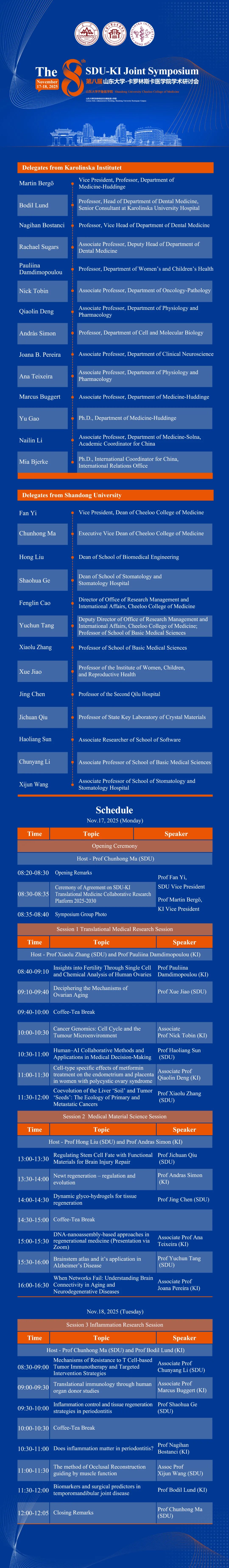会议通知 | 第八届山东大学-卡罗林斯卡医学院学术研讨会-2025年11月17-18日