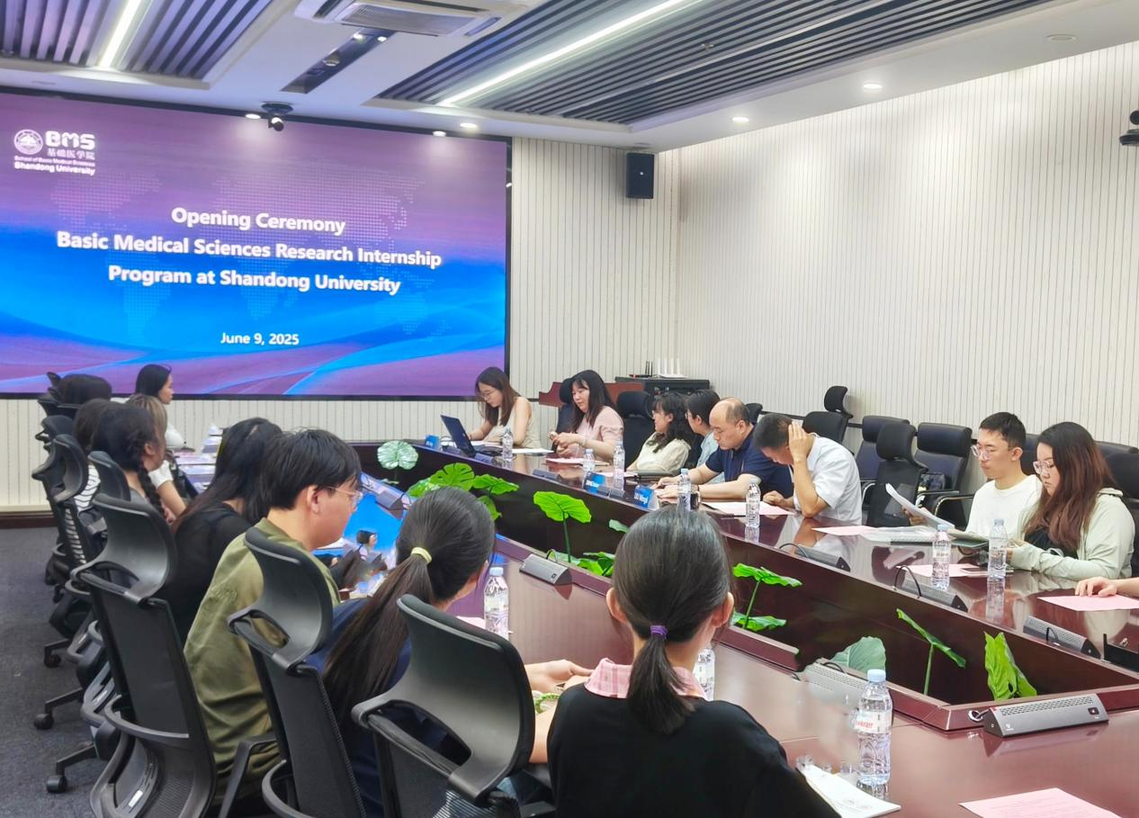 6月9日,山东大学基础医学院实验室实习项目开班仪式在趵突泉校区5111会议室举行。齐鲁医学院科研与国际交流办公室副主任汤煜春、基础医学院国际合作与交流办公室主任刘明利出席仪式。来自加拿大多伦多大学的9名本科生及各实验室代表参加仪式。